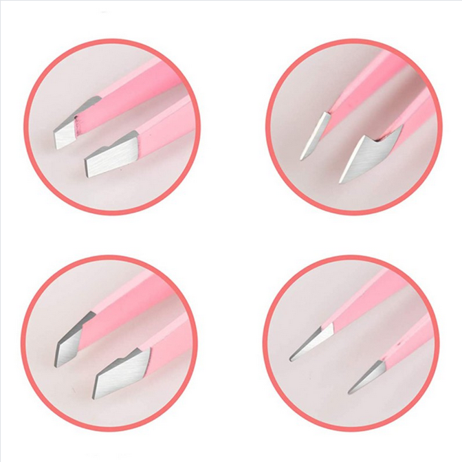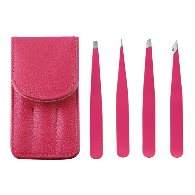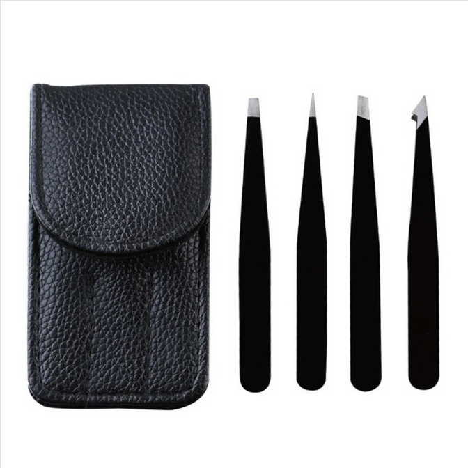 Zestaw zawiera 4 wysokiej jakości precyzyjne pęsety do brwi wykonane ze stali nierdzewnej.