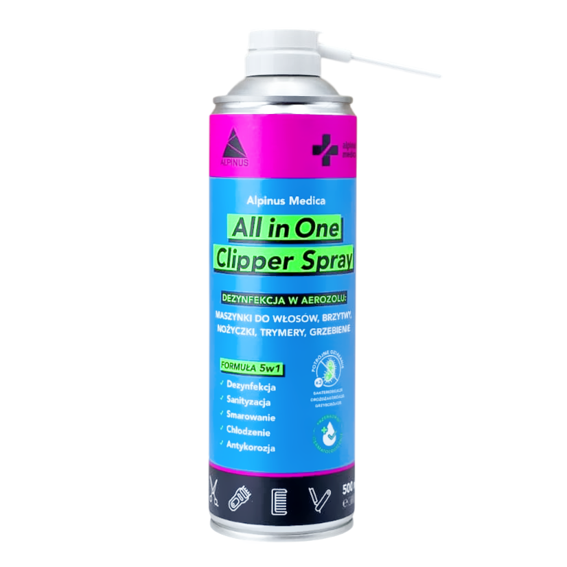 Profesjonalny preparat w formie aerozolu do dezynfekcji i czyszczenia akcesoriów fryzjerskich, barberskich oraz groomerskich – takich jak maszynki do włosów, trymery, nożyczki, brzytwy czy grzebienie. Wykazuje działanie bakteriobójcze, drożdżakobójcze i grzybobójcze, zapewniając higienę i bezpieczeństwo pracy.