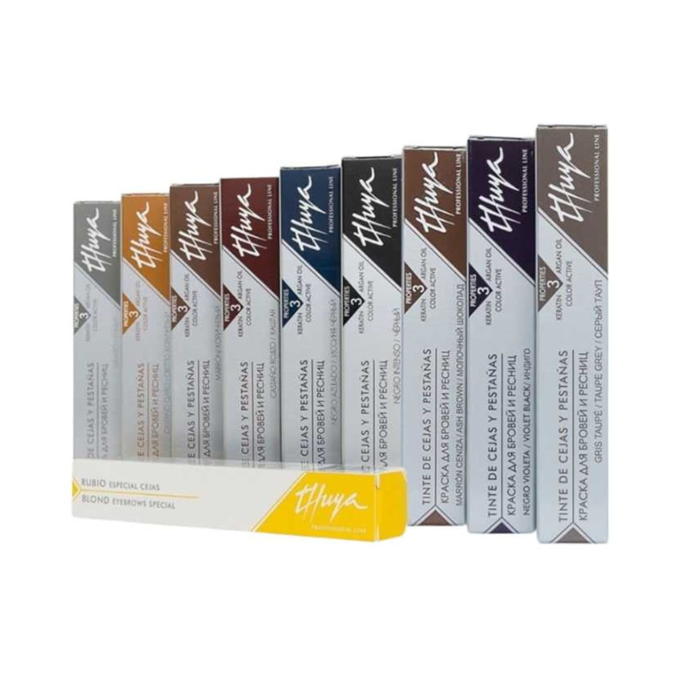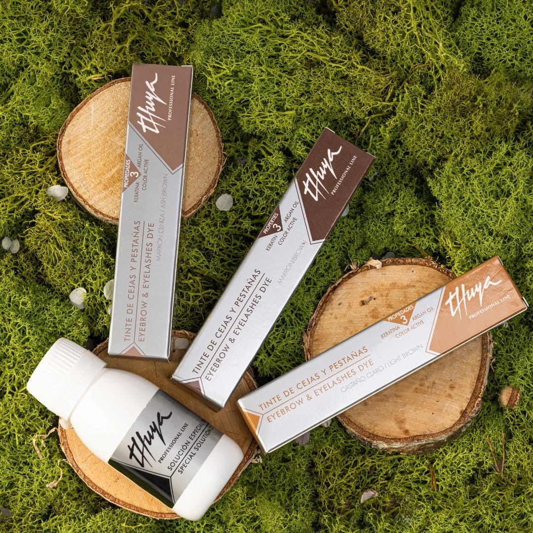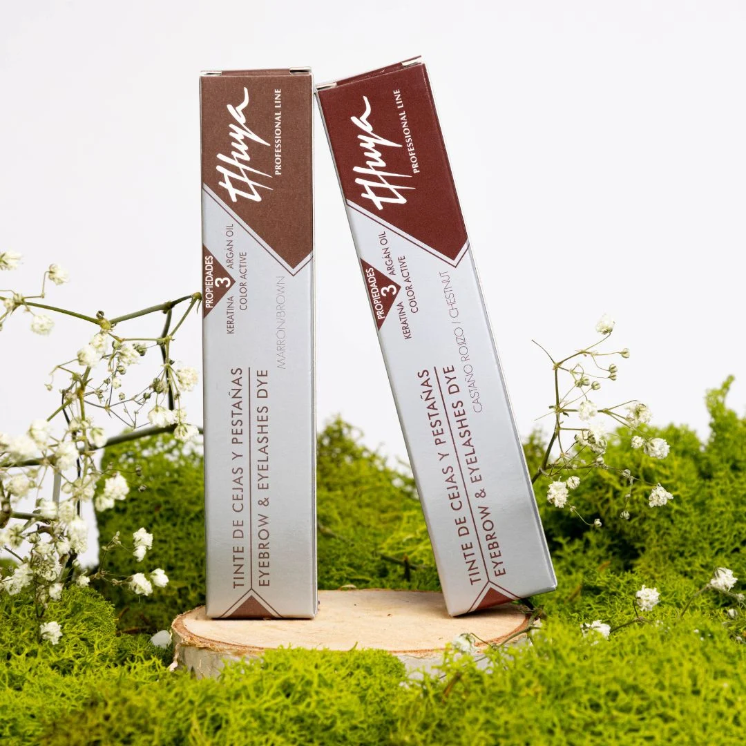 Unikalna farba do brwi i rzęs hiszpańskiej firmy Thuya, zawiera 3 składniki, które odpowiadają za jej zdrowotne właściwości. Dzięki nim oraz delikatnemu aktywatorowi w kremie lub wodzie, farby mogą być używane nawet do słabych włosków. Ponieważ praca z farbą Thuya to nie tylko praca ze sztucznym barwnikiem, ale naturalnym pigmentem znajdującym się znajdującym się w korze włosa. Dlatego ważna jest analiza kolorystyczna produktu, którym się chce pracować. Skład chemiczny jest bardzo bezpieczny dla zdrowia, są opracowywane we własnym laboratorium w Barcelonie. Przechodzą stałe testy dermatologiczne, okulistyczne oraz są certyfikowane. Ponieważ spełniają wymogi wysokiej jakości kontroli zgodnie z europejskimi standardami kosmetycznymi (Genetest).