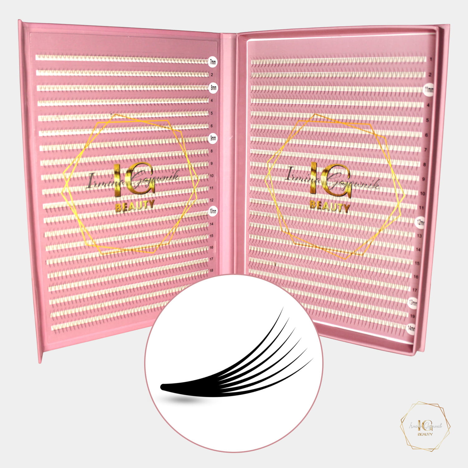 Każda paletka jest wyposażona w rzęsy o długościach od 7mm do 14mm dla objętości 2D do 10D, oraz od 8mm do 14mm dla wersji 12D, co pozwala na kompleksowe dopasowanie do potrzeb klientki.