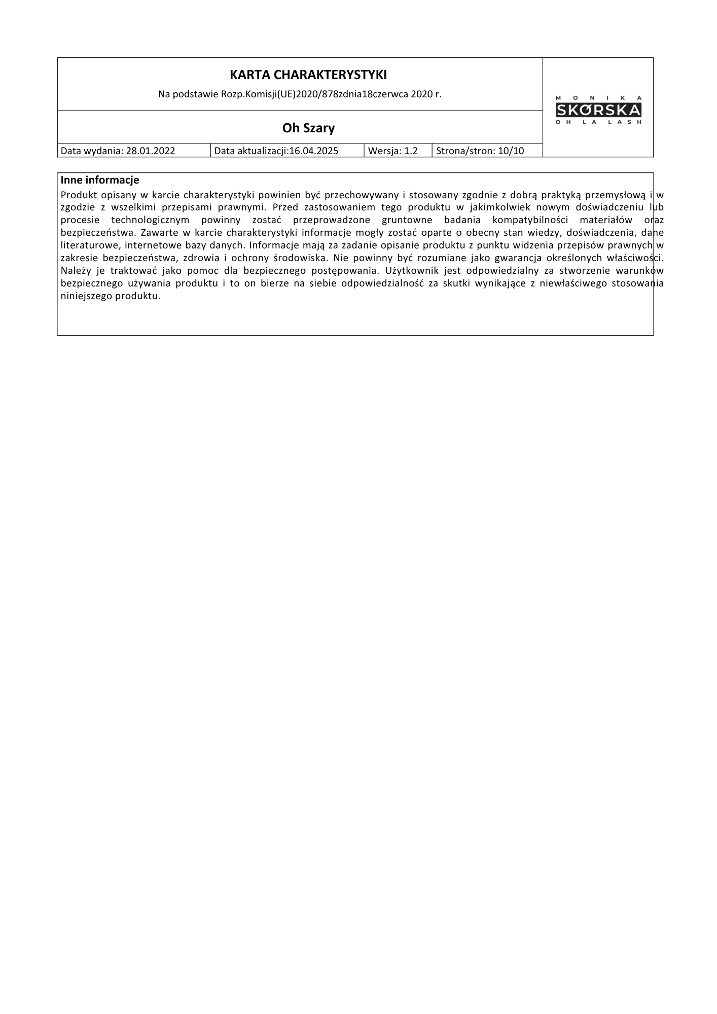 Czas schnięcia: 1s.,
