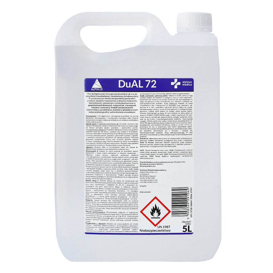 Płyn do dezynfekcji rąk i powierzchni DuAL 72 Alpinus 5L