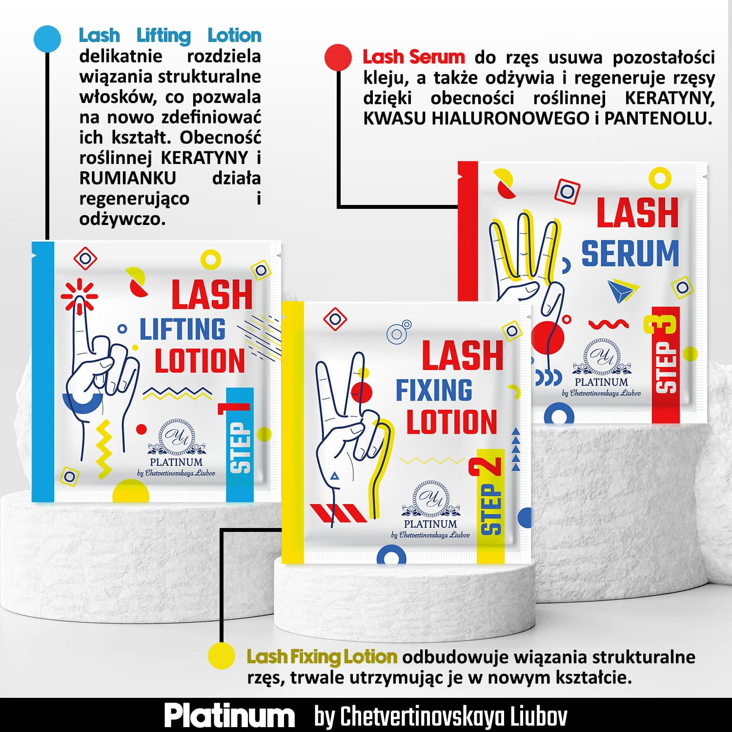 - Saszetki Step 1,2,3 (saszetki wystarcza na 4-5 zabiegów laminowania rzęs lub 2 zabiegi długotrwałej stylizacji brwi)